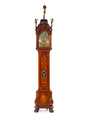 A Dutch Walnut and Marquetry Tall Case Clock