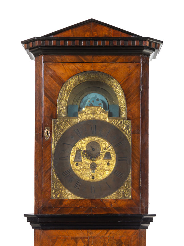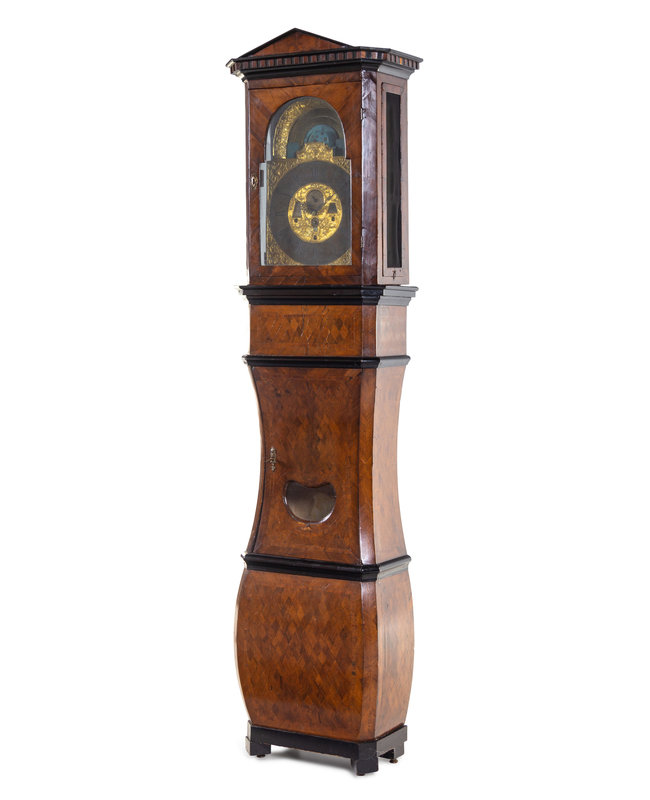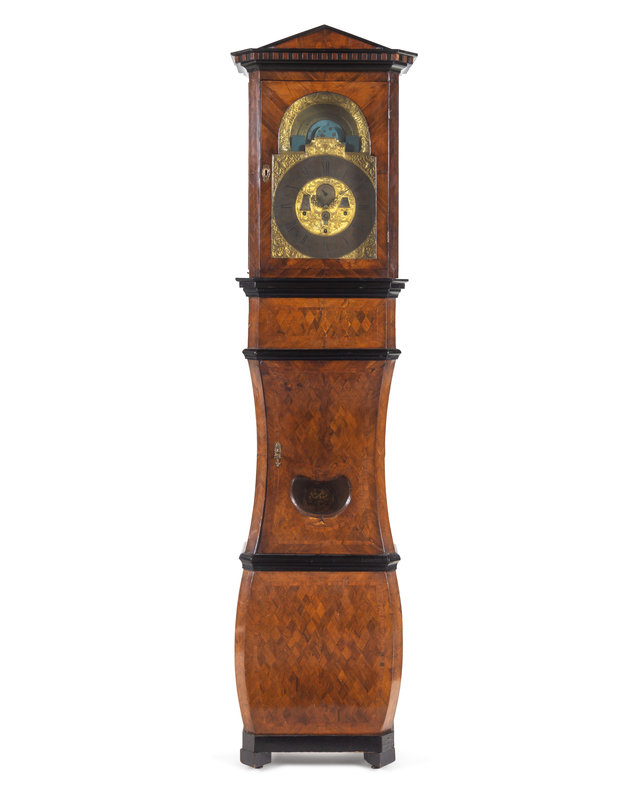 A German Parcel Ebonized Parquetry Case Clock