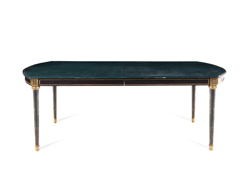 A Russian Empire Style Gilt Bronze Mounted and Green-Painted Dining Table