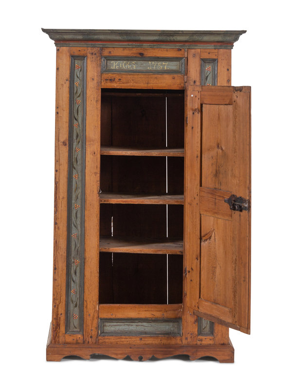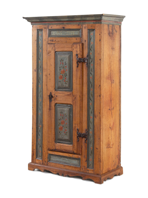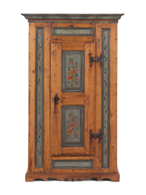 A Scandinavian Wrought Iron Mounted Painted Pine Schrank