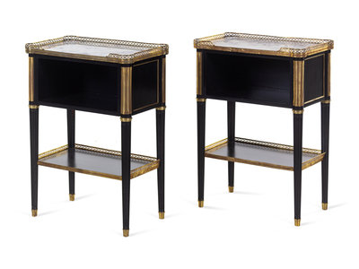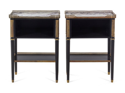 A Pair of Russian Empire Style Gilt Bronze Mounted Marble-Top Side Tables