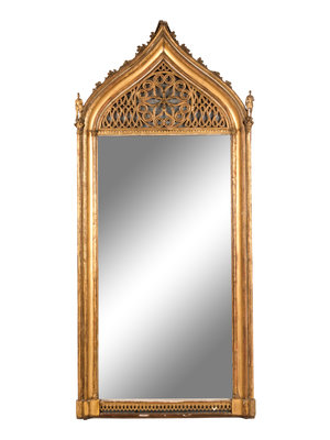 A Continental Gothic Revival Carved Giltwood Mirror