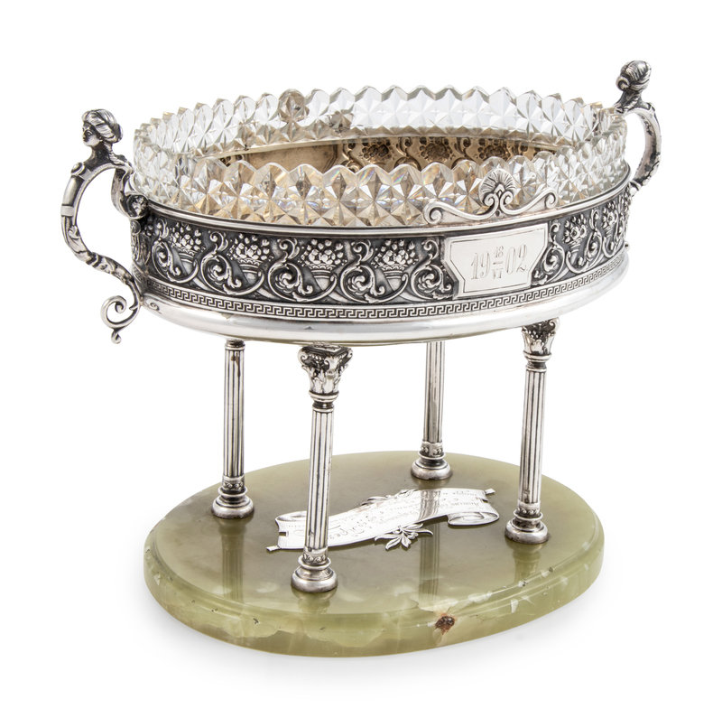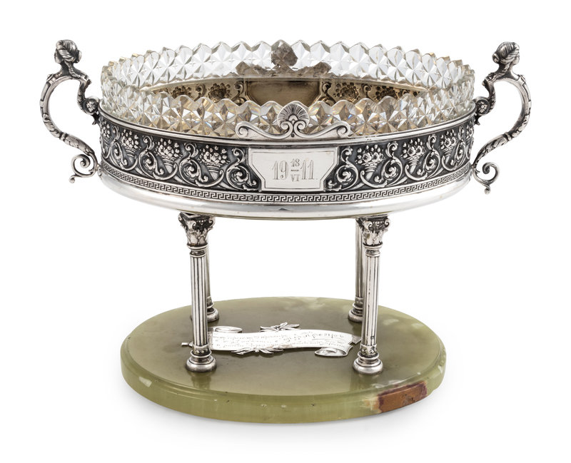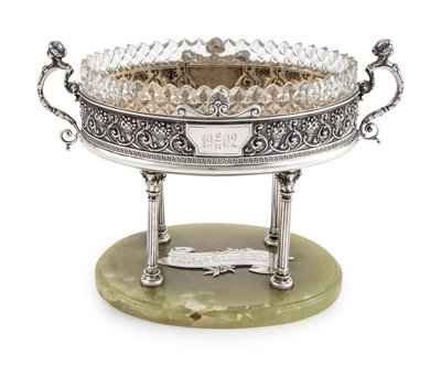 A Large Russian Silver and Agate Mounted Centerpiece Bowl
