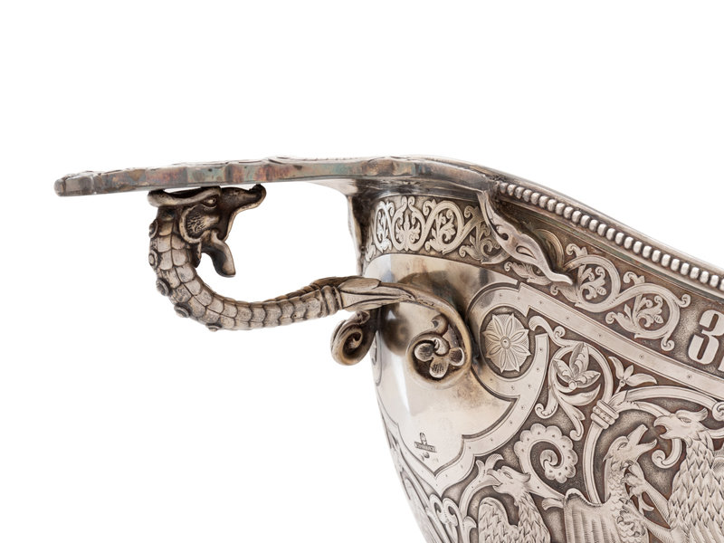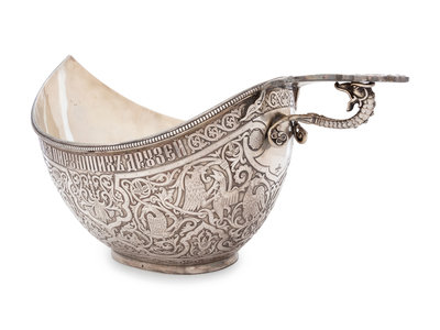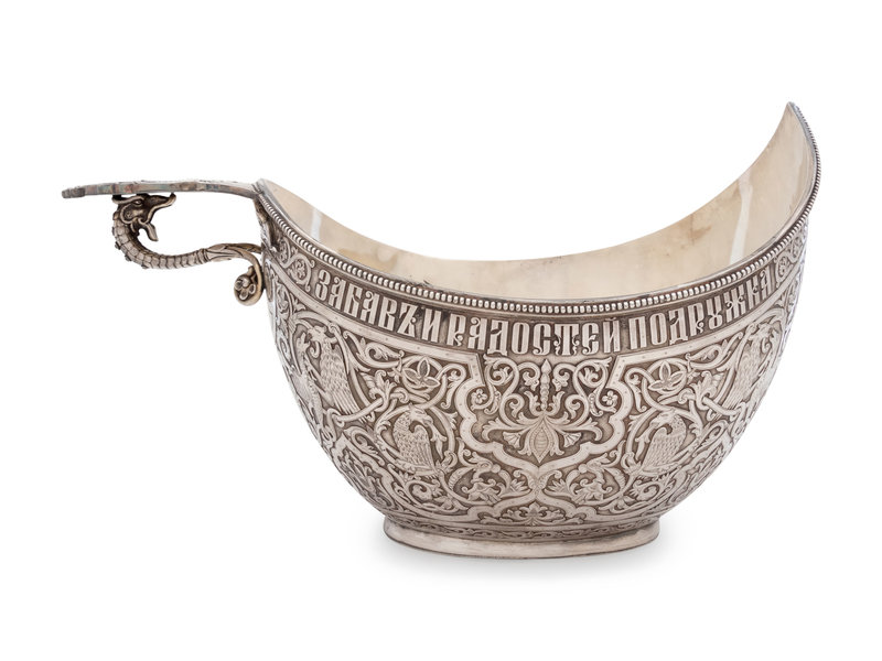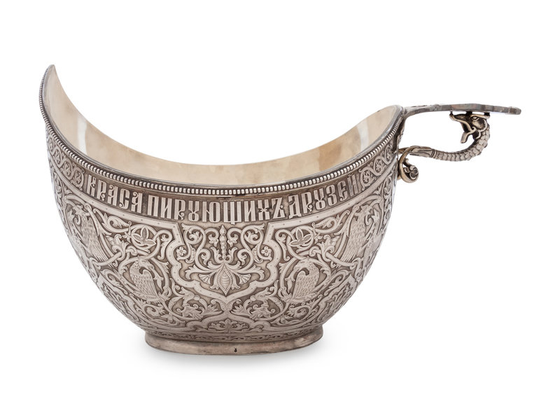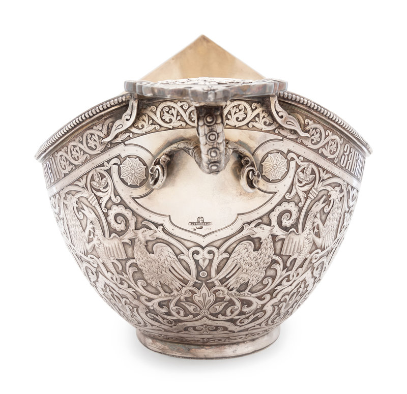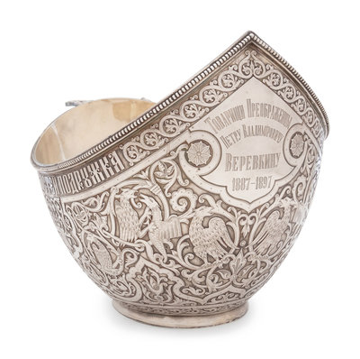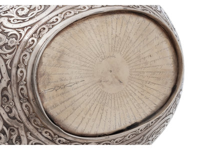 the front of the bowl with an engraved Cyrillic inscription and dated 1887-1897, the underside with approximately 80 engraved signatures.