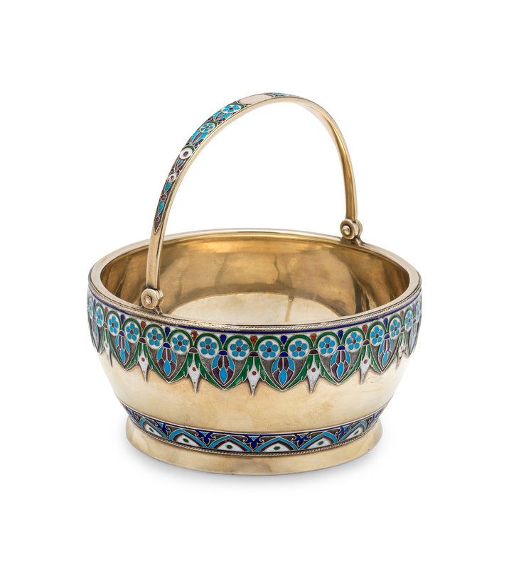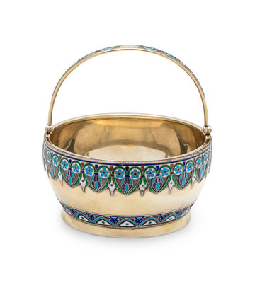 A Russian Silver-Gilt and Enamel Sugar Bowl