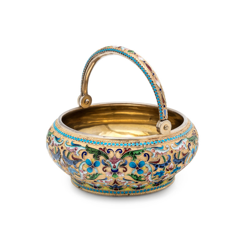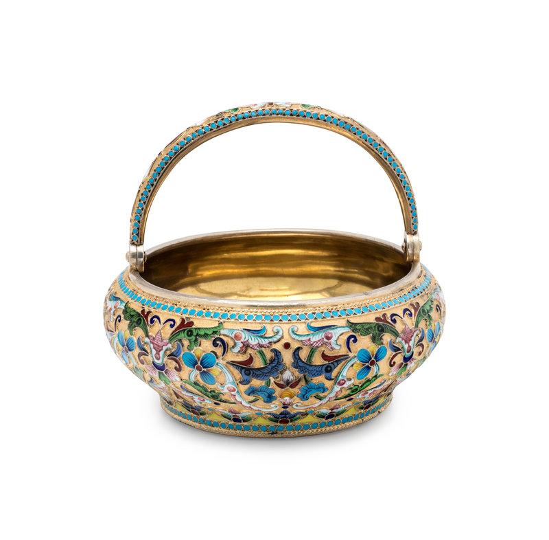 A Russian Silver-Gilt and Shaded Enamel Sugar Bowl