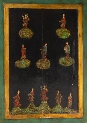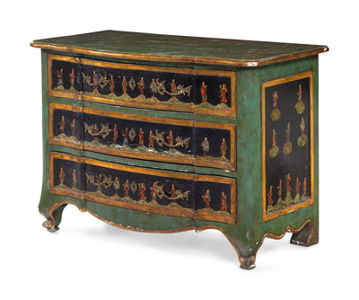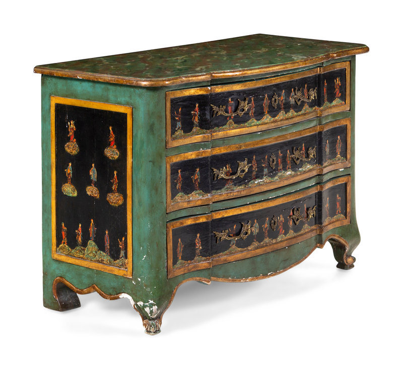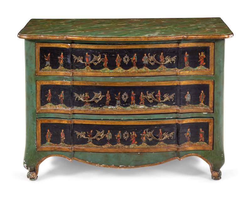 A Continental Chinoiserie Painted Faux Marble-Top Commode