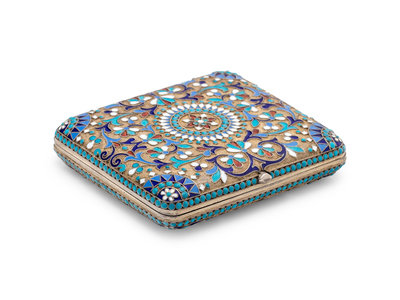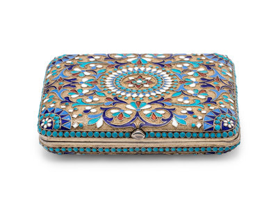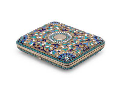 A Russian Silver-Gilt and Enamel Cigarette Case