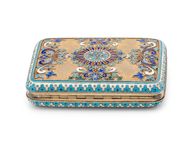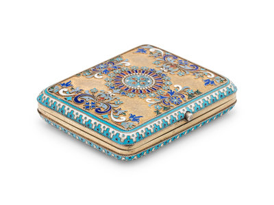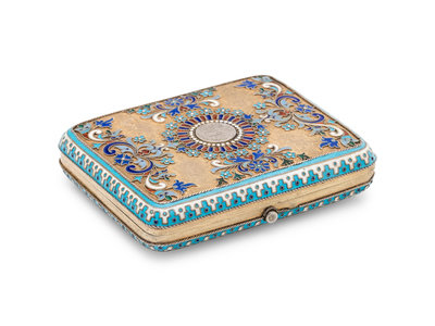 A Russian Silver-Gilt and Enamel Cigarette Case