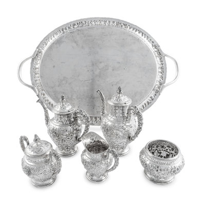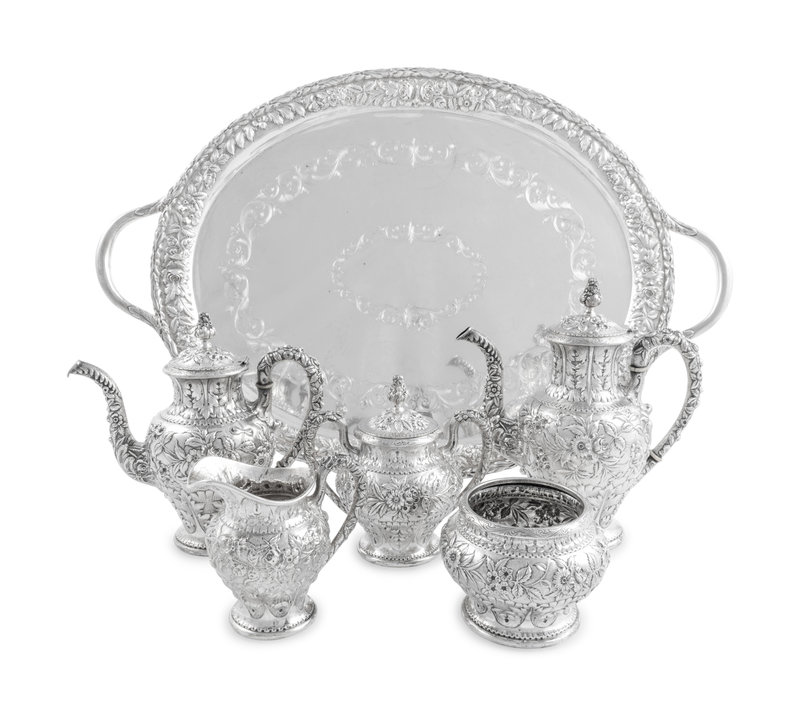 An American Silver Repoussé Six-Piece Tea and Coffee Service