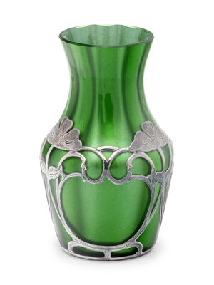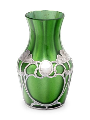 An Art Nouveau Silver Overlay Glass Vase