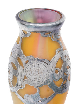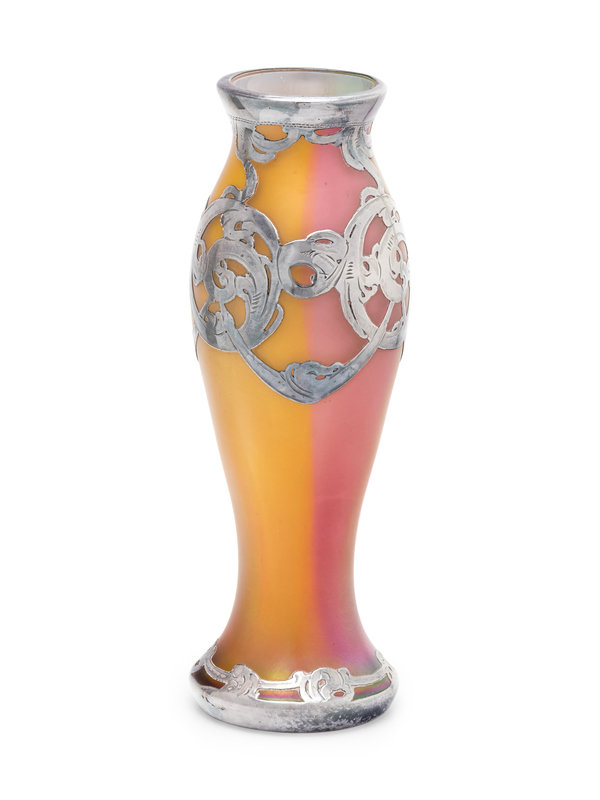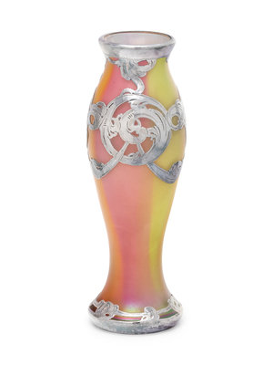 An Art Nouveau Silver Overlay Glass Vase