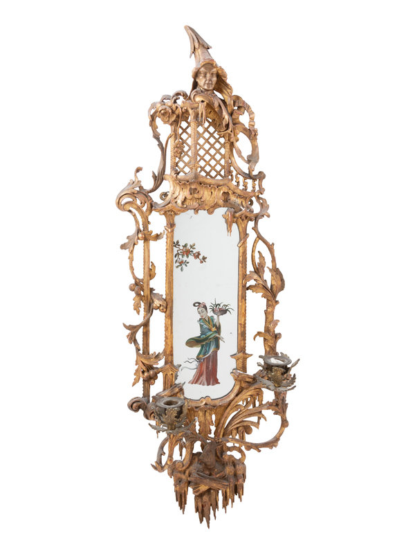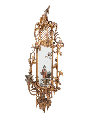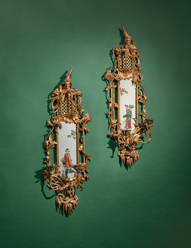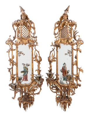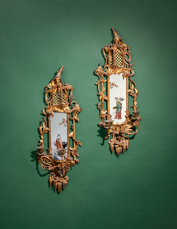 A Pair of Chinese Chippendale Giltwood and Reverse-Painted Glass Mirrors