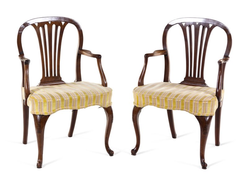 A Pair of George Ill Tassel-Carved Mahogany Scroll-Foot Armchairs