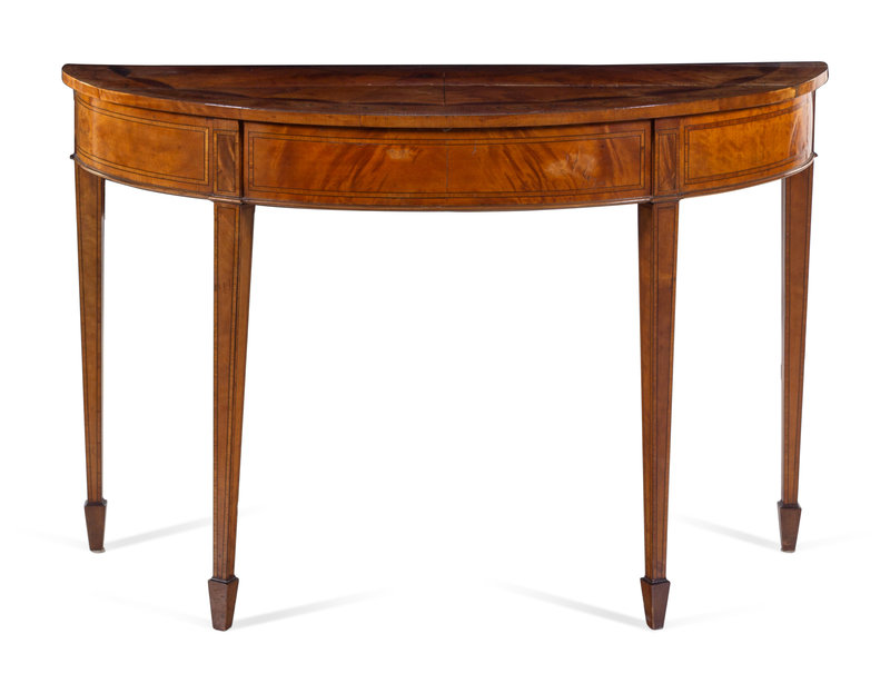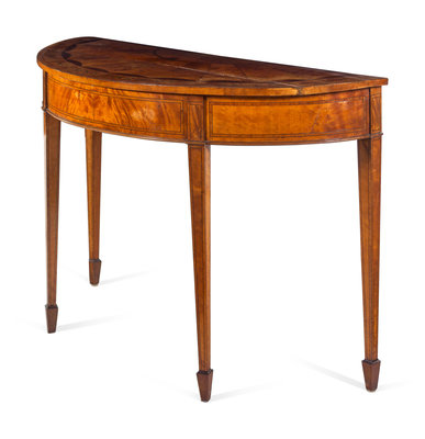 A George III Satinwood and Marquetry Demilune Table