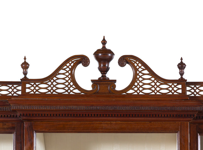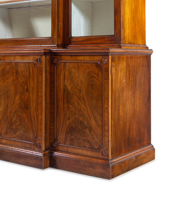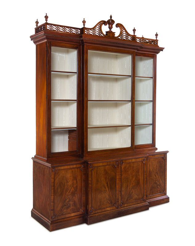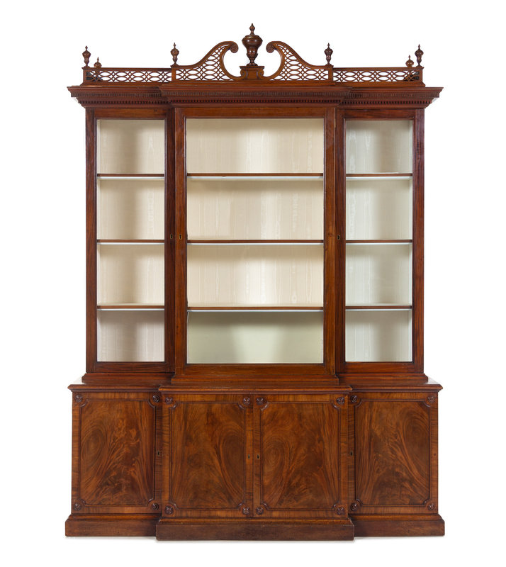A Late George III Pierce Carved and Figured Mahogany Breakfront Cabinet