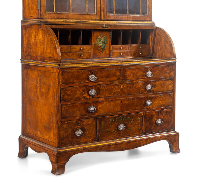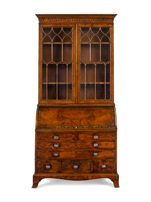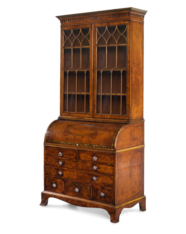 A George III Walnut Veneered and Painted Secretary Bookcase