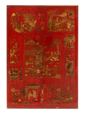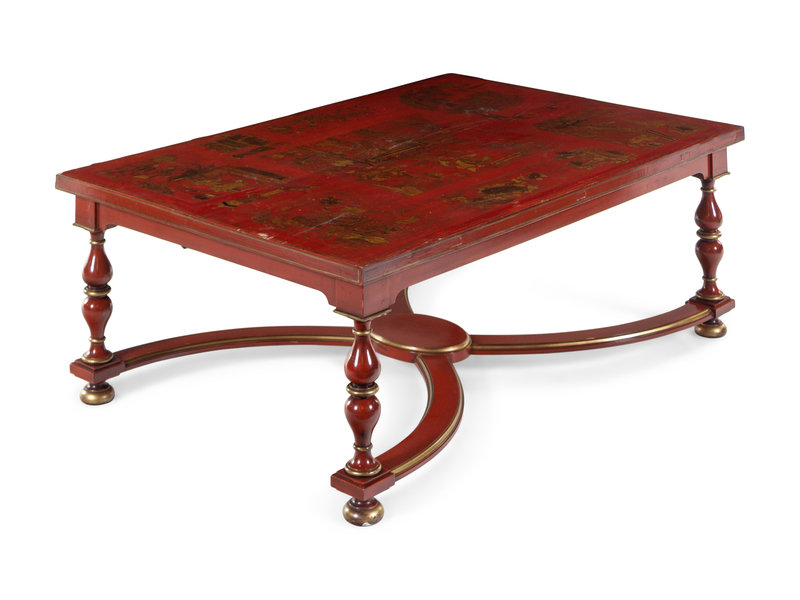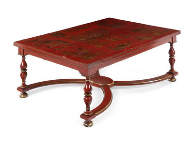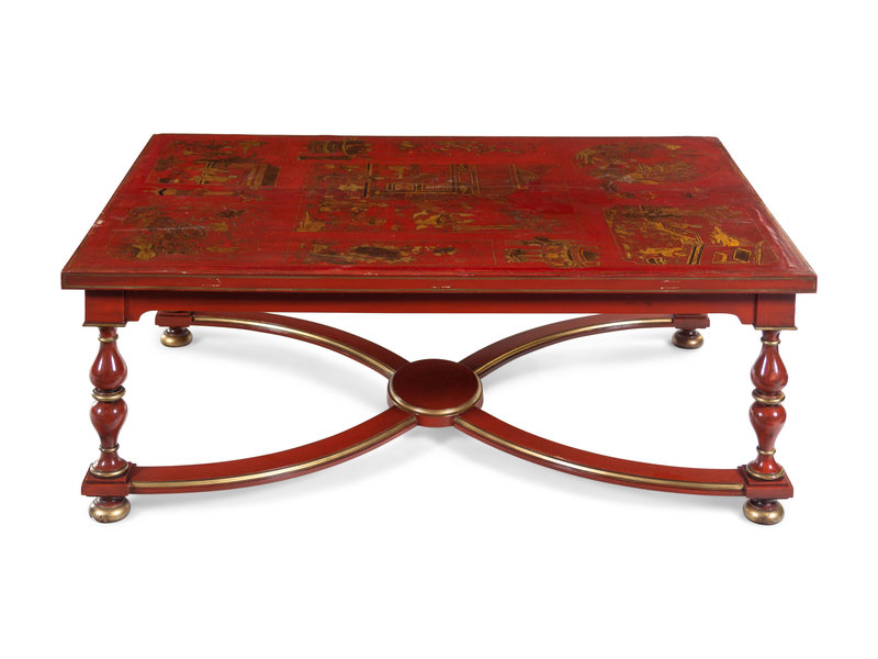 A Parcel Gilt and Red Lacquered Chinoiserie Decorated Low Table