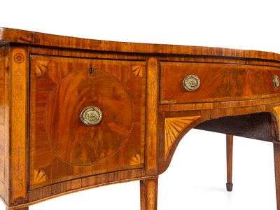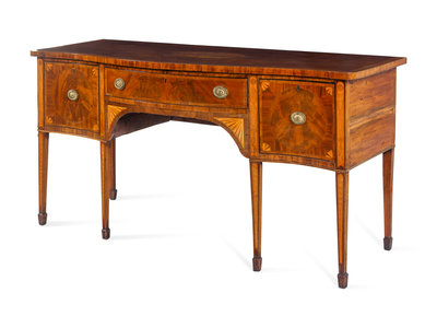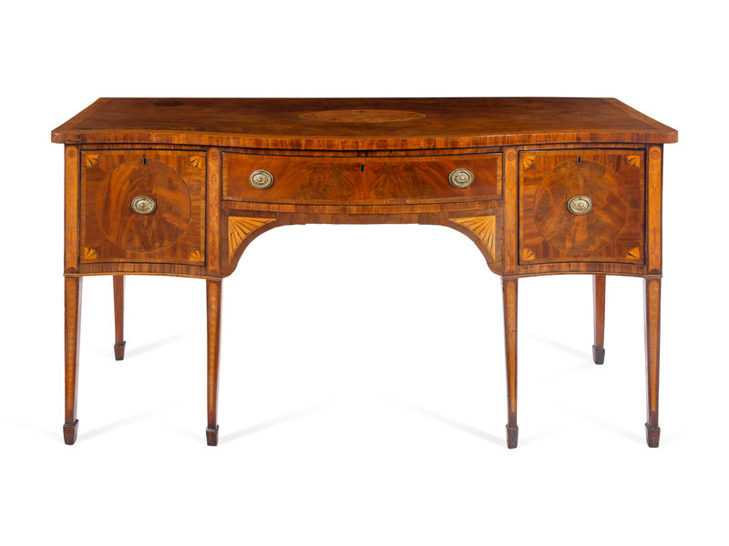 A George III Satinwood Inlaid Figured Mahogany Serpentine-Front Sideboard