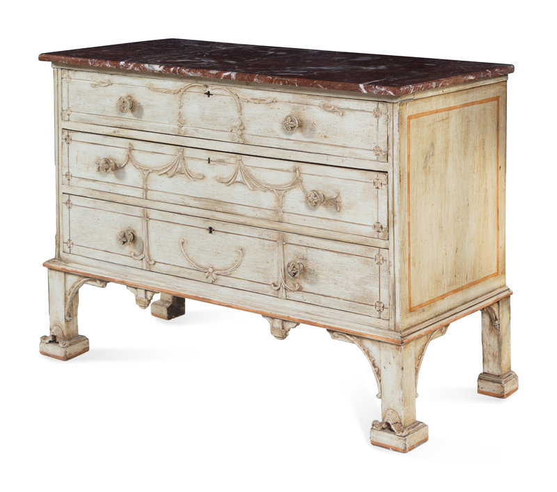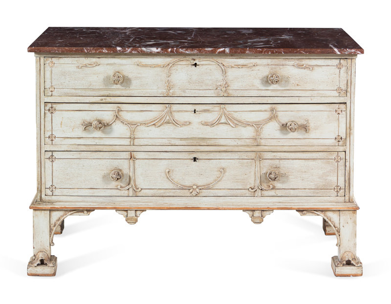 A George III Carved and Painted Marble-Top Commode in the Chinese Chippendale Taste