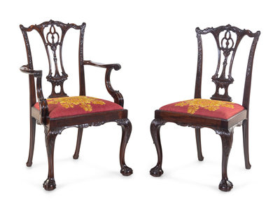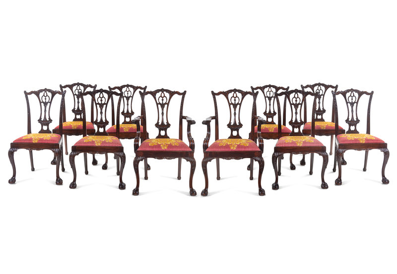 A Set of Ten George III Style Carved Mahogany Dining Chairs