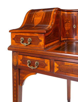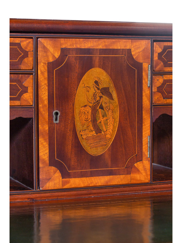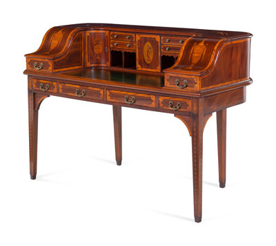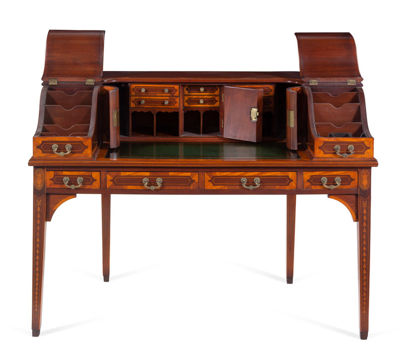 A George III Style Inlaid and Figured Mahogany Leather Inset Carlton House Desk