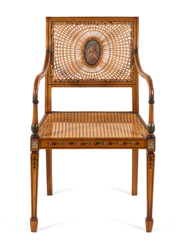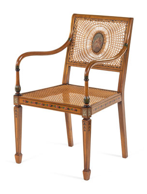 An Edwardian Painted Beechwood Cane Upholstered Armchair