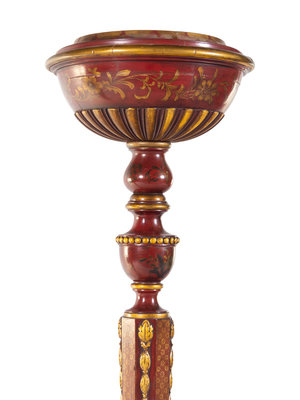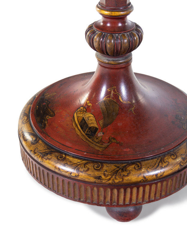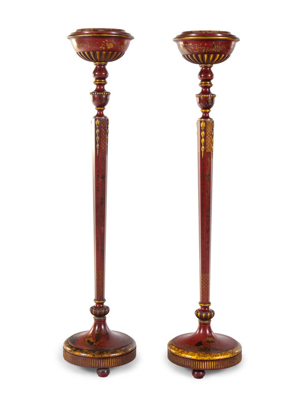 A Pair of English Lacquered and Chinoiserie Decorated Torchères