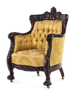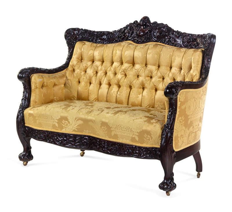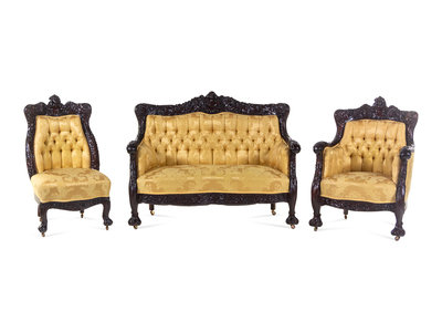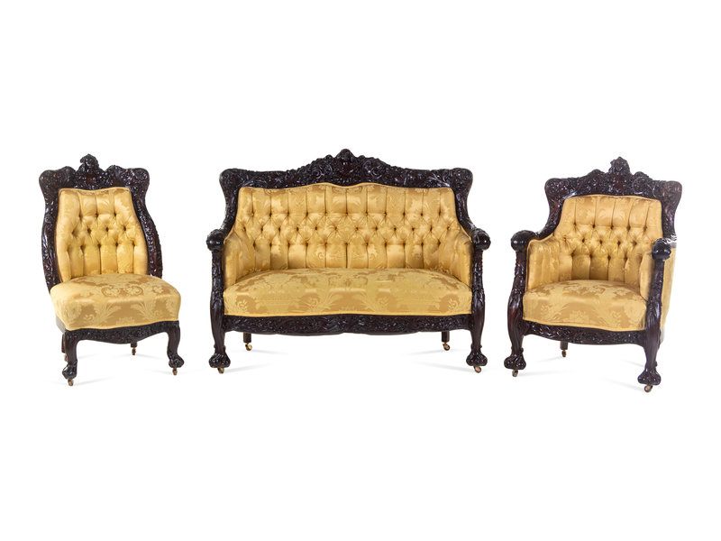 A Karpen Carved Mahogany Three-Piece Parlor Suite