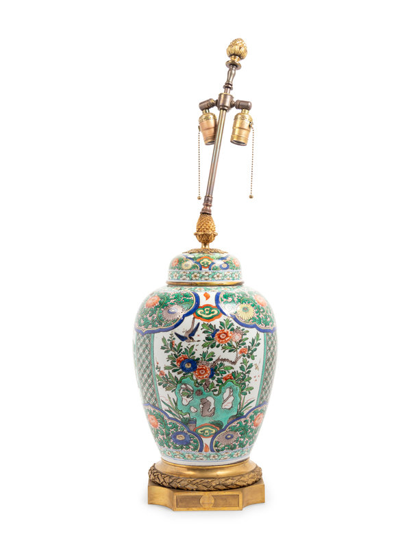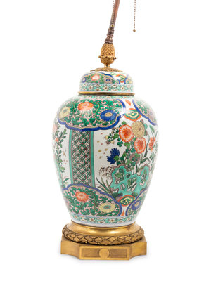 A Chinese Export Famille Verte Porcelain Covered Jar