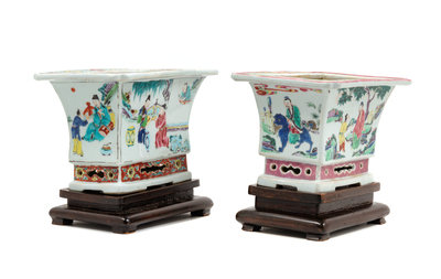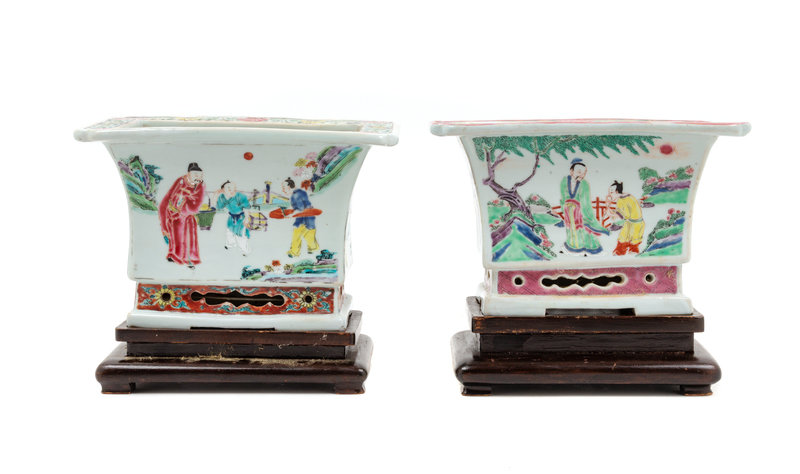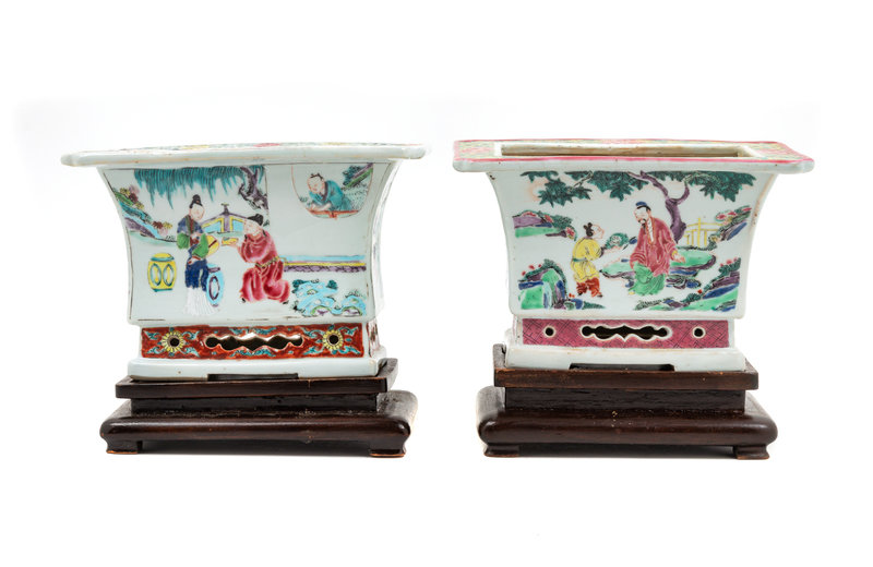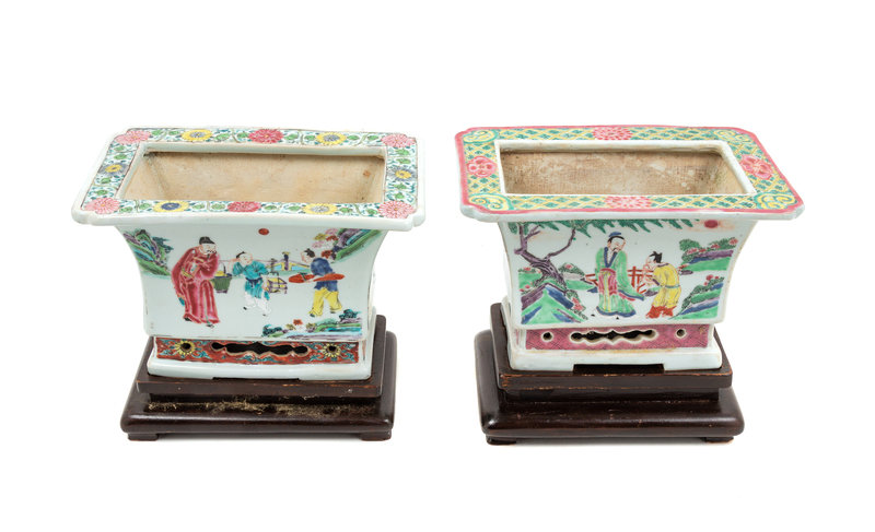 A Pair of Chinese Famille Rose Porcelain Cache Pots