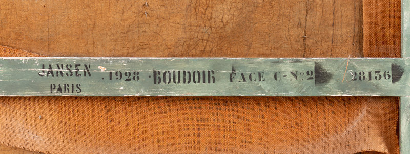 some panels stamped Jansen Paris 1928 Boudoir 28136 to the reverse.