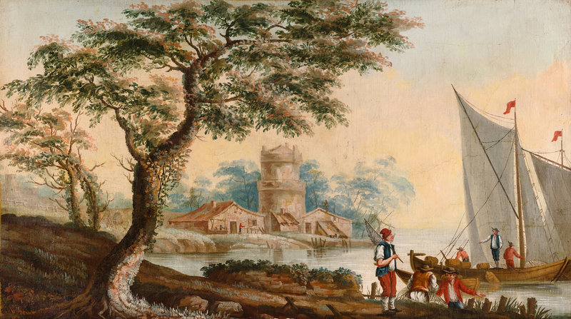 Ten French Painted Canvas Panels of Various Ports of France