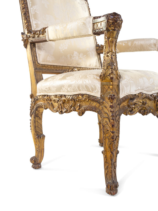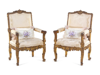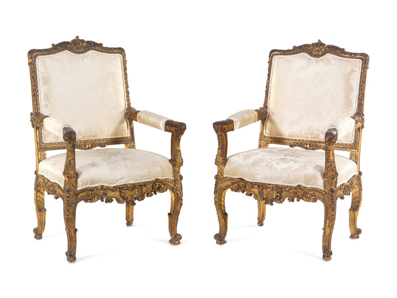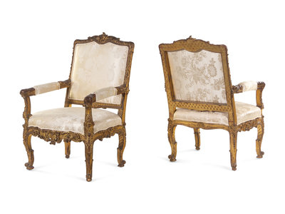 A Pair of Régence Style Carved Giltwood Fauteuils