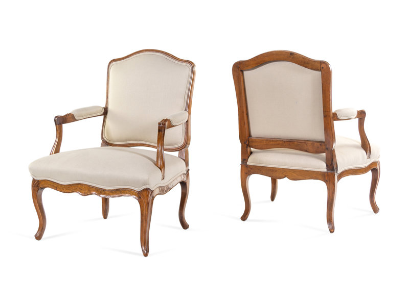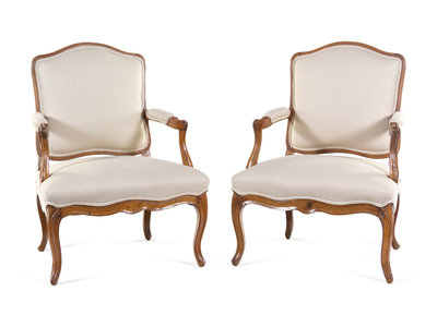 A Pair of Louis XV Carved Beechwood Fauteuils