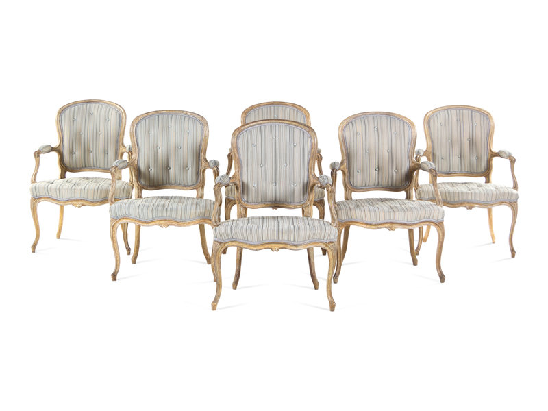 A Set of Six Louis XV Carved and Painted Fauteuils