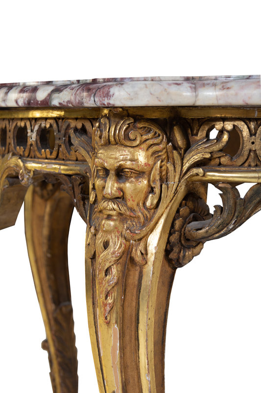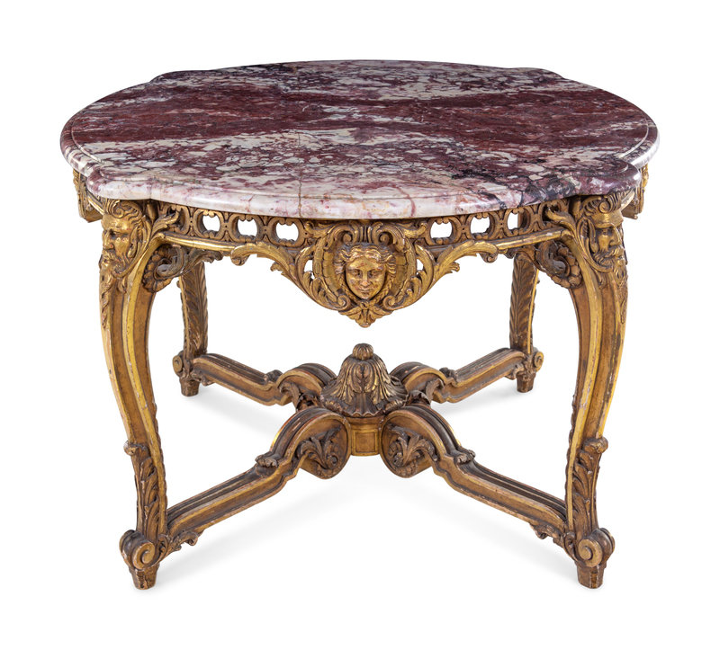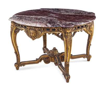 A Louis XV Style Giltwood Marble-Top Center Table