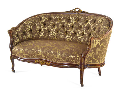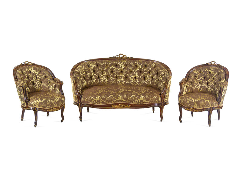 A Louis XV Style Gilt Bronze Mounted Rosewood Three-Piece Salon Suite
