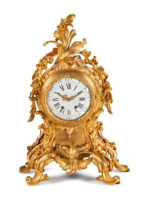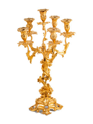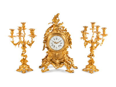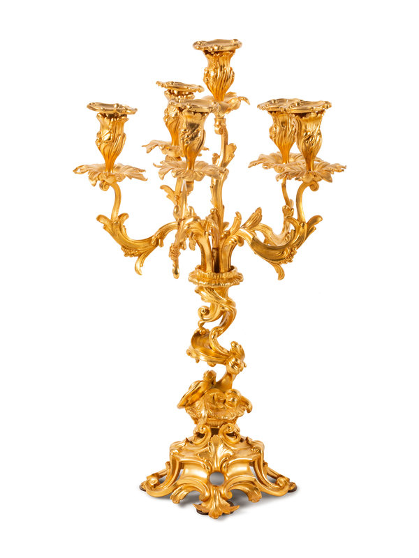 the movement stamped N.D 2298, with a pair of six-light candelabra.