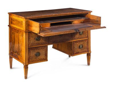 A Louis XVI Walnut and Fruitwood Marquetry Metamorphic Secretary Desk