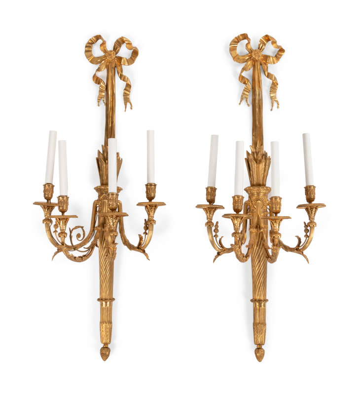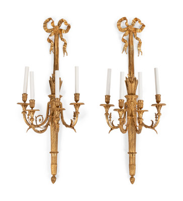 A Pair of Louis XVI Style Gilt Bronze Four-Light Wall Sconces