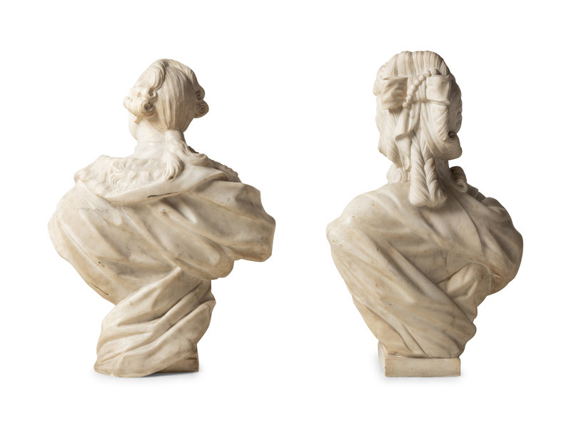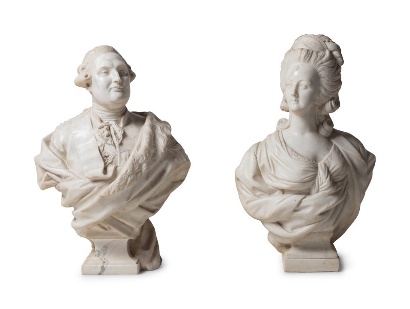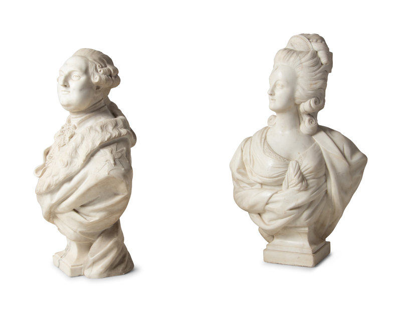 A Pair of French Carved Marble Busts of Louis XVI and Marie Antoinette