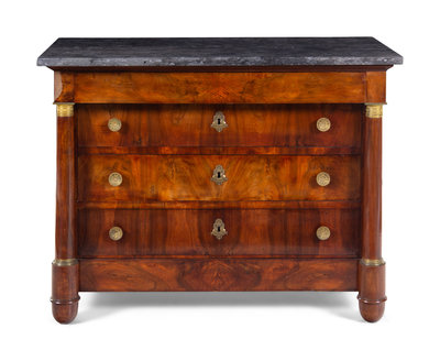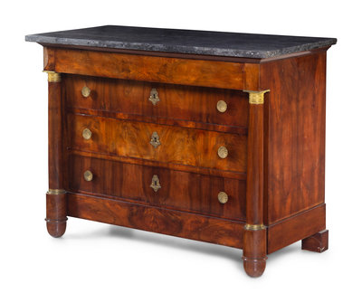 An Empire Style Gilt Metal Mounted Mahogany Marble-Top Commode