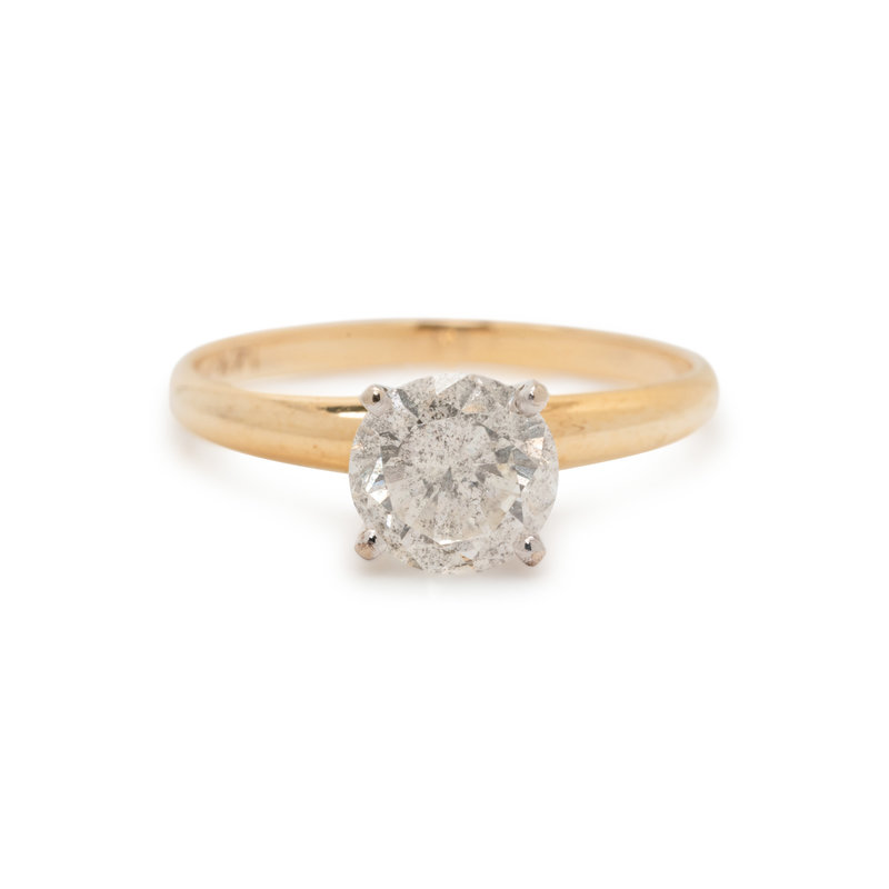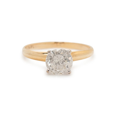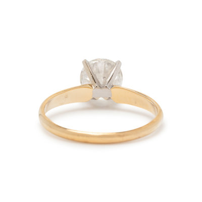Containing one round brilliant cut diamond weighing approximately 1.15 carats. Mounted in bicolor gold.