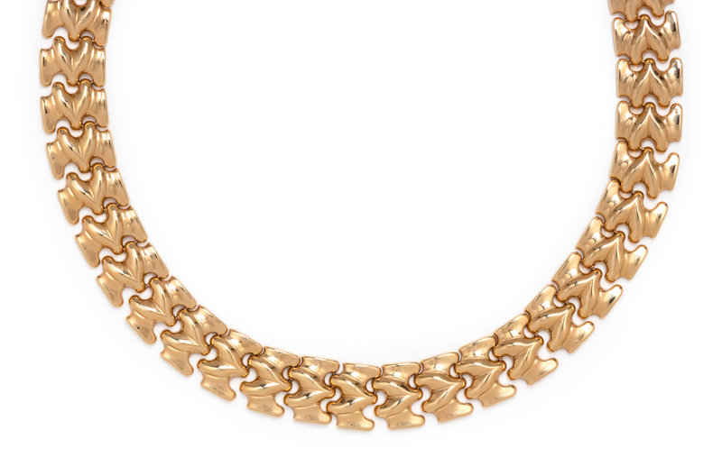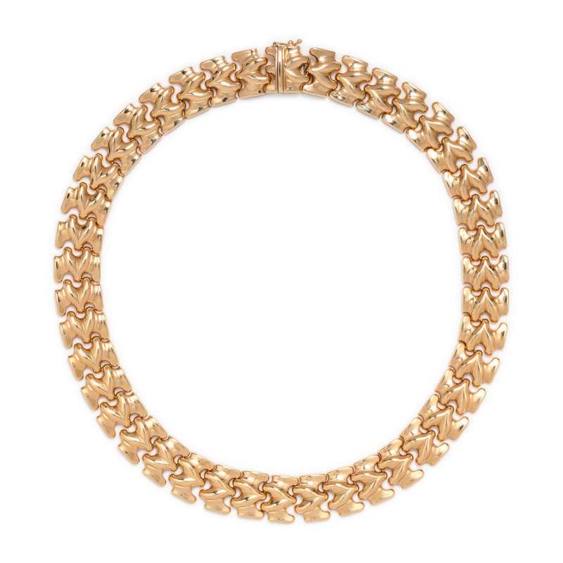 Consisting of a flexible link necklace measuring approximately 15.00 mm wide.