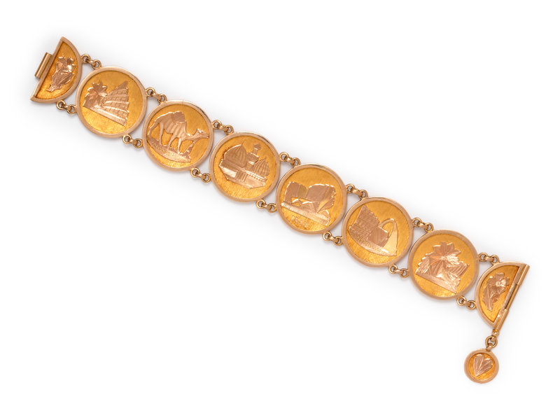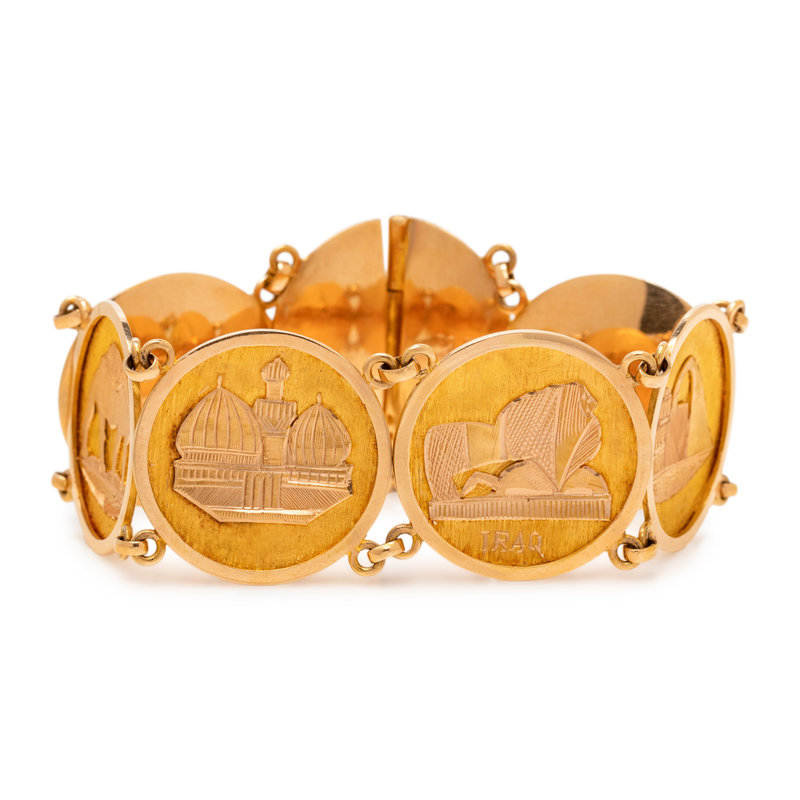 Consisting of circular concave textured gold links surmounted with scenes from Iraq.