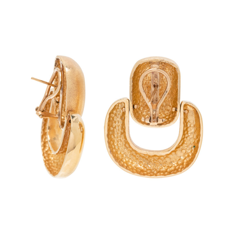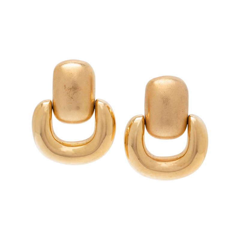 Consisting of matte and high polish doorknocker style earclips, posts with clip backs.