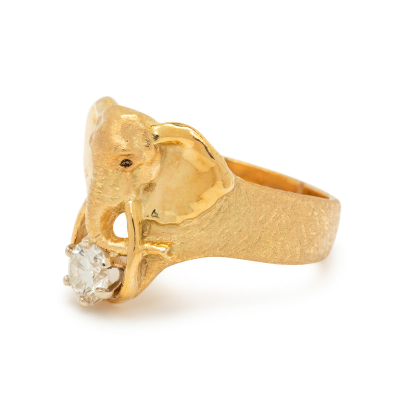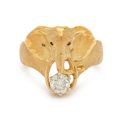 YELLOW GOLD AND DIAMOND ELEPHANT RING