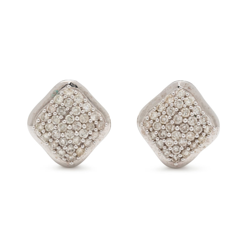 Containing 64 round brilliant cut diamonds weighing approximately 1.00 carat total. Mounted in white gold.