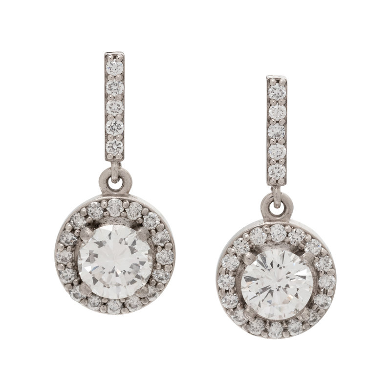 Containing two round brilliant cut diamonds weighing approximately 1.10 carats total and 42 round brilliant cut diamonds weighing approximately 0.30 carat total. Mounted in platinum.